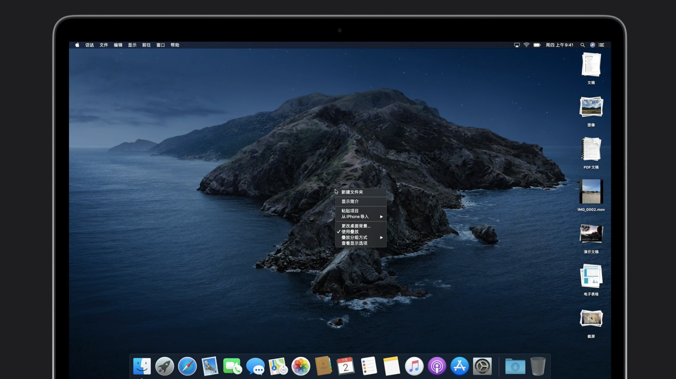 在 Mac 上,右键点按桌面,在快捷菜单中选“使用叠放”,就能让文件、视频、图片及其它项目各归各位。请观看 Apple 支持的微博视频。