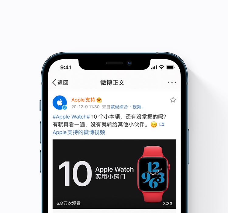 Apple Watch 10 个小本领,还有没掌握的吗?想了解更多,请点击 Apple 支持的微博视频。