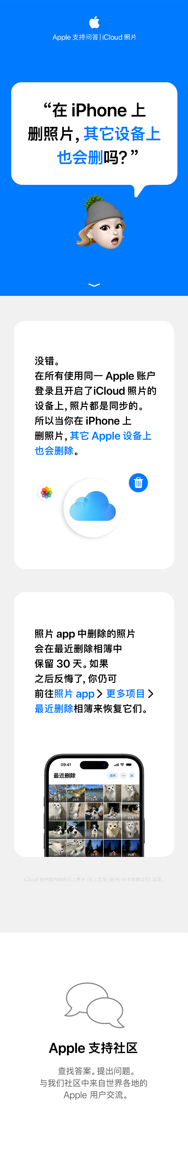 Apple 支持问答 - iCloud 照片系列之四“在 iPhone 上删照片,其他设备上也会删吗?”