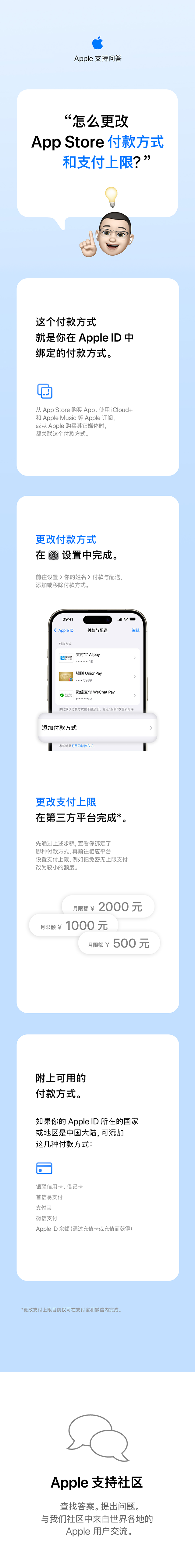 Apple 支持问答 - 怎么更改 Apple Store 付款方式和支付上限?
