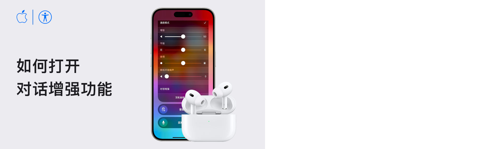 在嘈杂坏境中面对面交谈时,你可以使用对话增强功能,让 AirPods Pro 辨析你面前的人声,让你听清对方说的话。请点击 Apple 支持微博链接了解怎么操作: