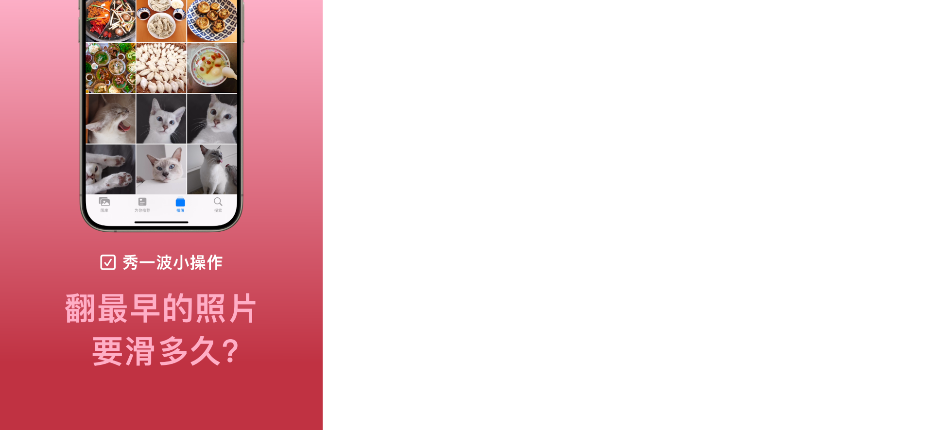 想在照片相簿里找到最早的照片,不必一直滑滑滑滑滑...