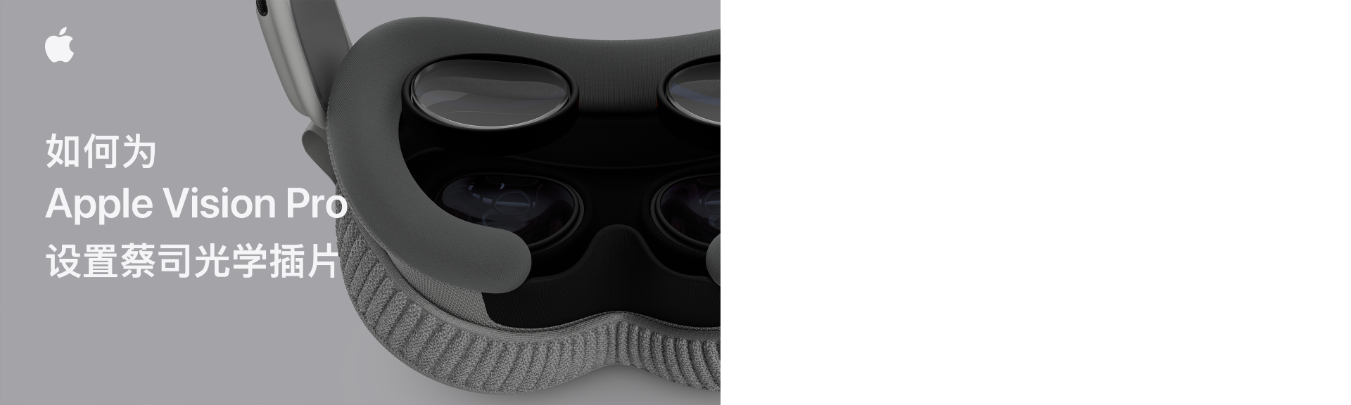 如果你佩戴处方眼镜或老视眼镜,可以订购蔡司光学插片,搭配 Apple Vision Pro 一起使用。点击 Apple 支持微博链接 来看看蔡司光学插片要如何安装和配对。