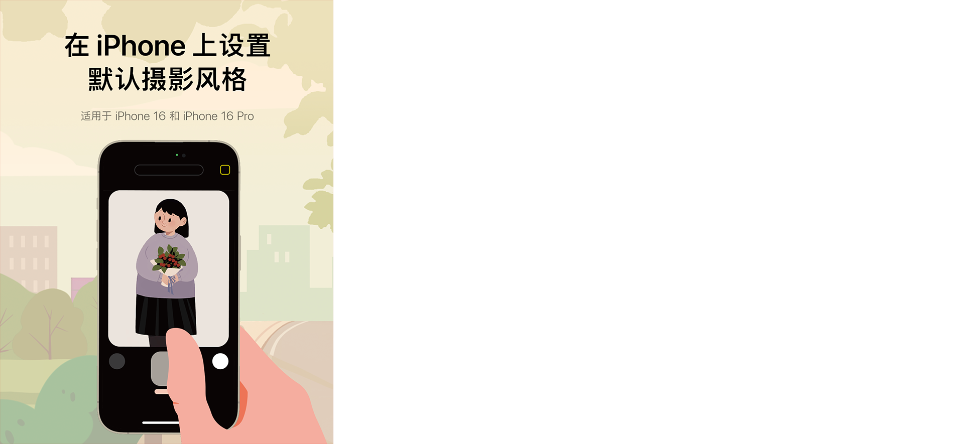 你可以将 iPhone 相机中的摄影风格设为默认。只需预选一种喜欢的底色,相机一开启,自带你风格。请点击 Apple 支持微博来看看怎么做。