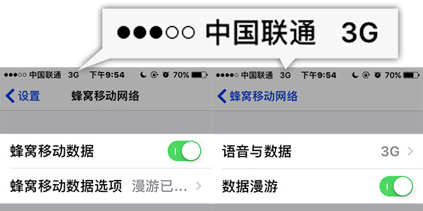 如果可以访问网络,或者设备获取了网络信号。iPhone荧幕的顶端,应该显示网络制式标识。如图:当前我是在3G模式下,图标已经显示在运营商名称右侧。