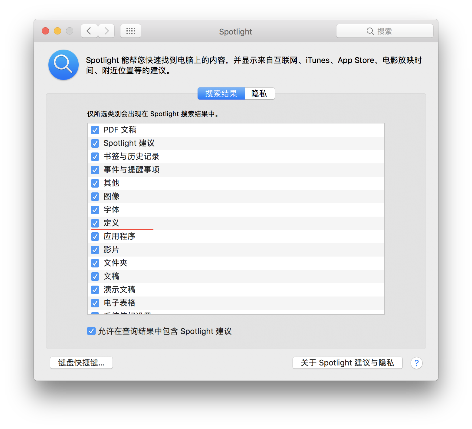 可能是某次误删了词典dictionary对应的某个plist或者是误删了词典本身,然后从app store下载了词典,之后在搜索spotlight里面就再也没见过dictionary自动给的翻译了。怎么破?