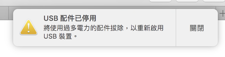 针对 USB 设备、USB 键盘和 USB SuperDrive 的功率不足警告