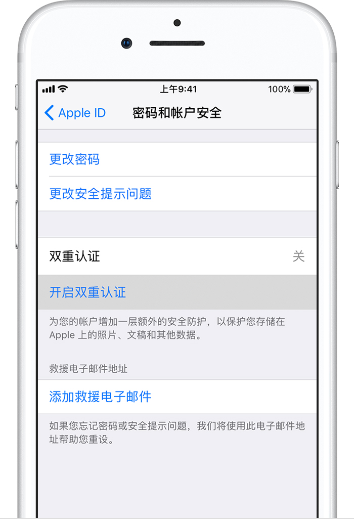 为 Apple ID 设置双重认证