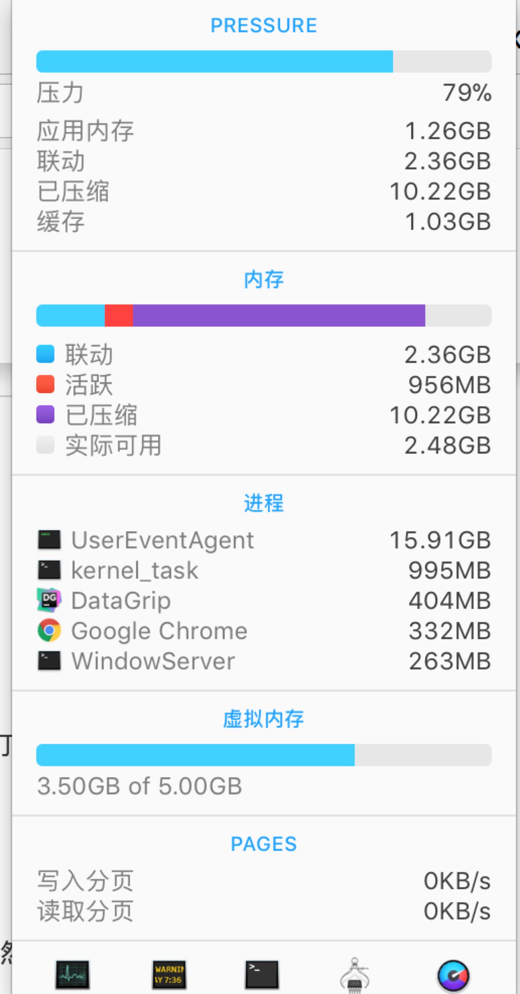 这个是内存情况,知道那个用了15G的进程是什么吗?Spotlight已经关闭了,我明天用EtreCheck检查下,再发上来,备份数据抹盘重装和从TM恢复不一样吗?意思是我要手动拷出所有数据,重装一个干净的系统,然后再把数据拷回来?如果是这样,那我的 TM是不是要从重装的那一刻开始?以前的都没有了?