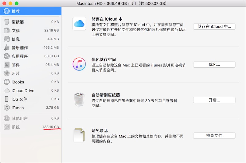 在 macOS Sierra 中,当您开启“优化 Mac 储存空间”时,会显示“可清除”内容。当需要储存空间时,Mac 可自动从“可清除”部分清理出储存空间。标记为可清除的文件始终可以根据需要再次下载。