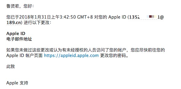 未注册过的邮箱收到一封更改AppleID和邮箱的邮件