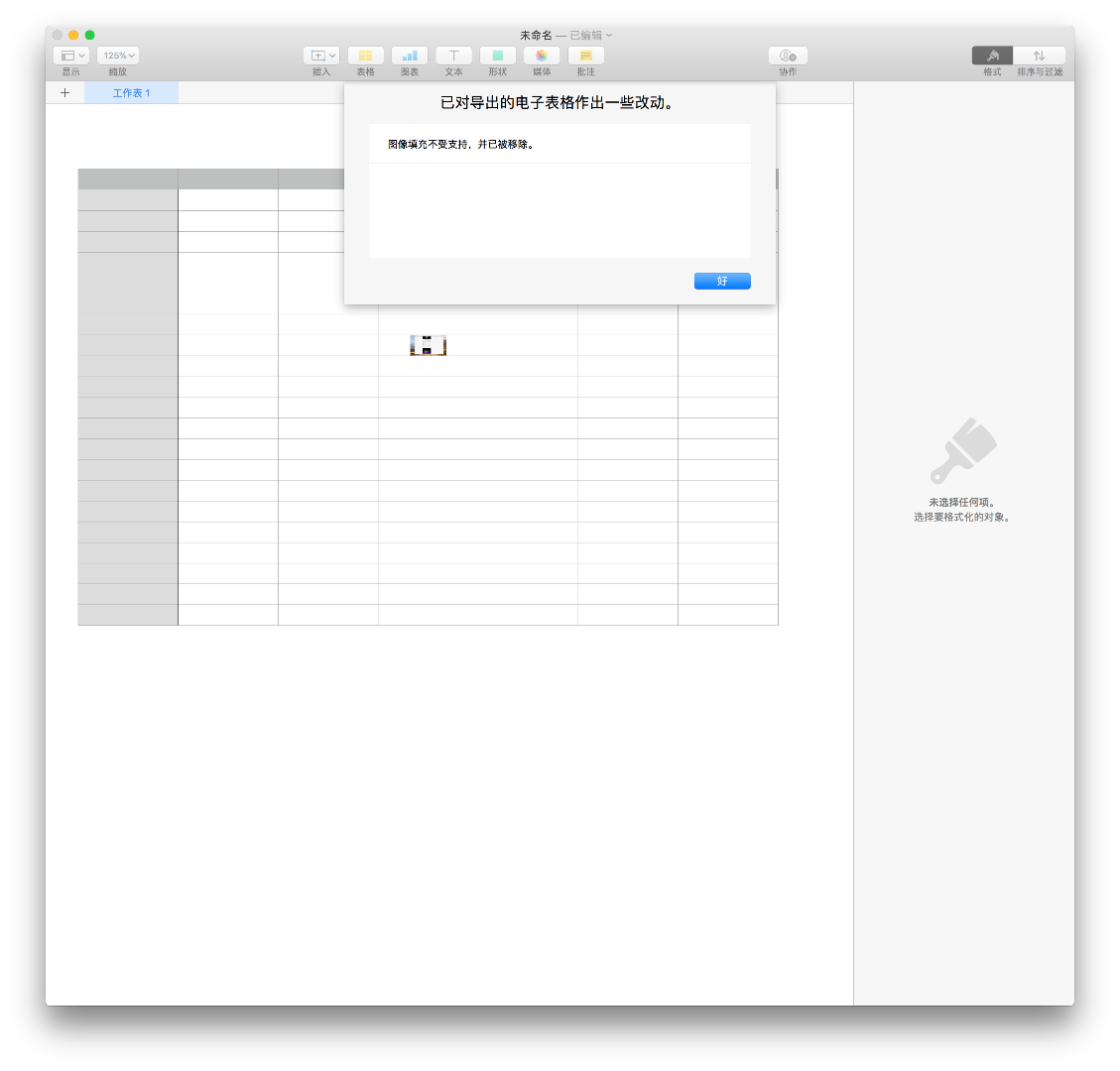 Numbers 导出到 Excel 图像填充不受支持