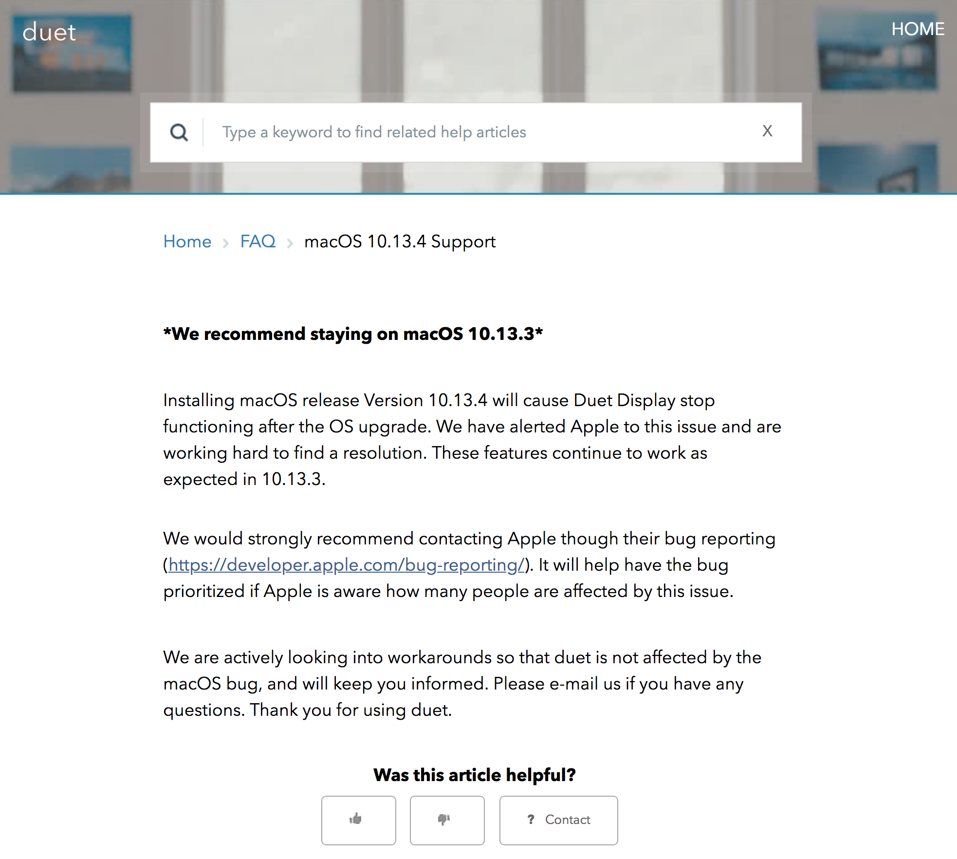 是10.13.4与Duet Display无法一起工作,参见网址:https://help.duetdisplay.com/faq/305404-macos-10-13-4-support