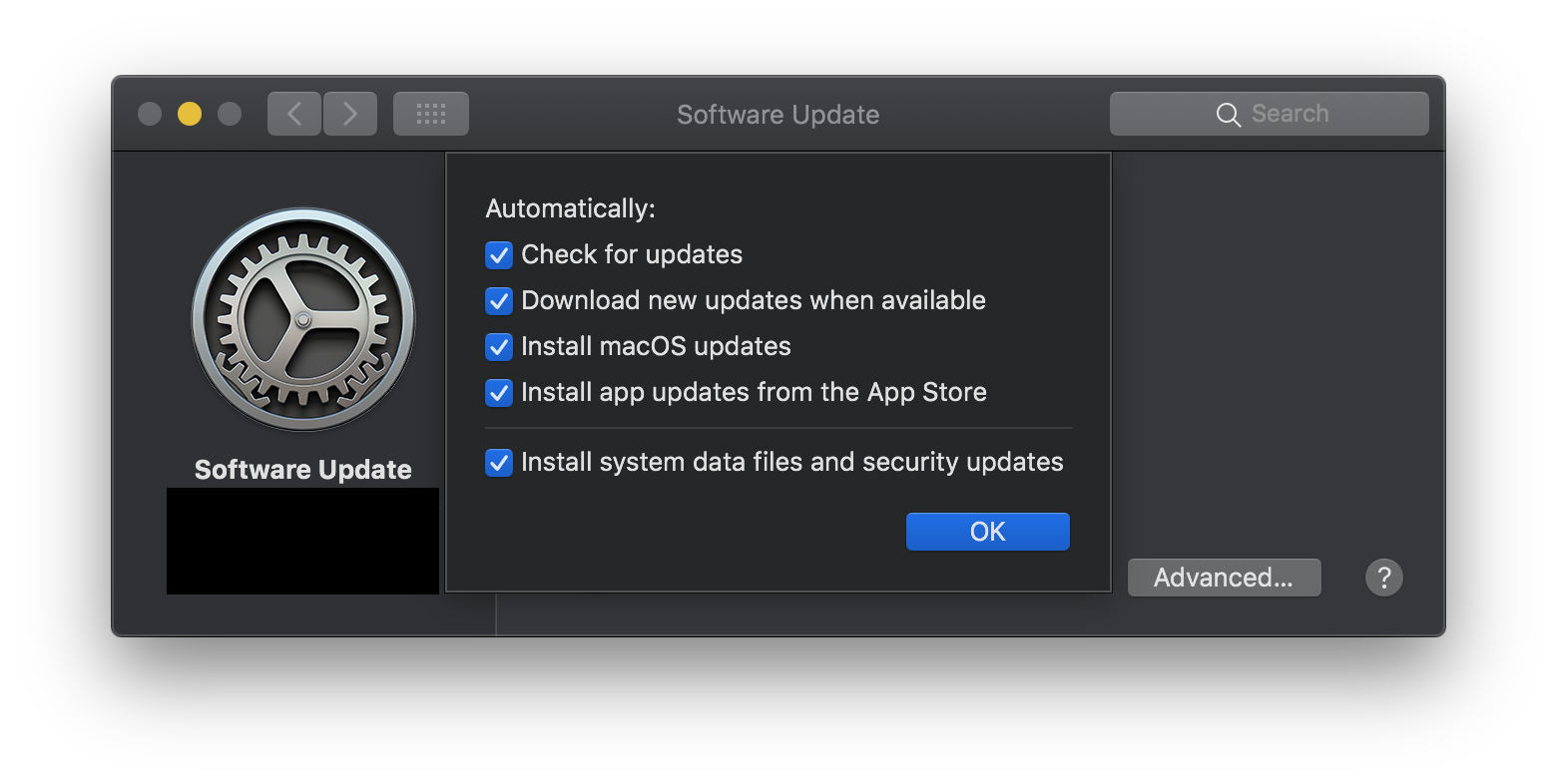 对了,不知道在你体验 Mojave 的时候有没有留意到,Mojave 的系统偏好设置里面已经出现了选择是否允许自动「检查」「下载」「安装」更新的相关设置。等秋季 Mojave 到来的时候就可以选择了(如果你选择了升级到 Mojave 的话😉~)。