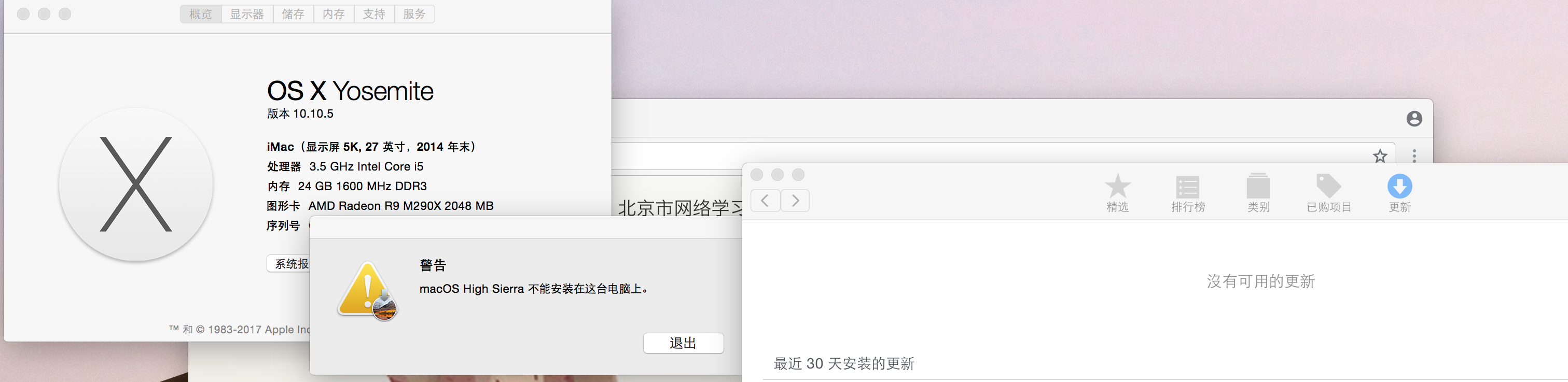 降到10.10是因为这时这台电脑全盘抹除后能下的第一个版本。从10.12开始这电脑就非常卡了,开一个Safari都要在dock上蹦个半分钟,后来实在忍受不了了就 买了个mbp。现在这电脑偶尔拿出来打打印,结果打个印都能卡半天,所以才降到10.10de