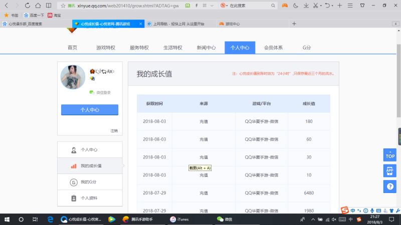 玩腾讯游戏都知道,充值某些游戏会有一定的体统成长值增加,图一是我今天苹果账单的充值,图二是华夏手游绑定心悦俱乐部充值到账的成长值,唯独缺少一个6480的成长值。 有大神能帮忙教教怎么申请成功退款吗?