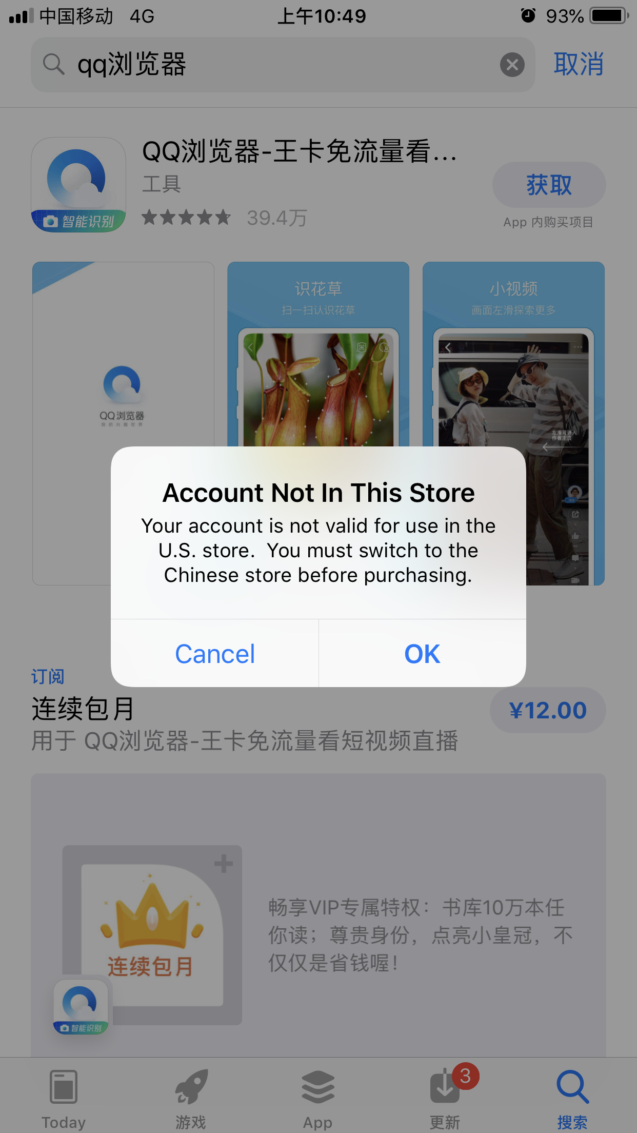 app store下载app时弹出英文对话框,无法下载app