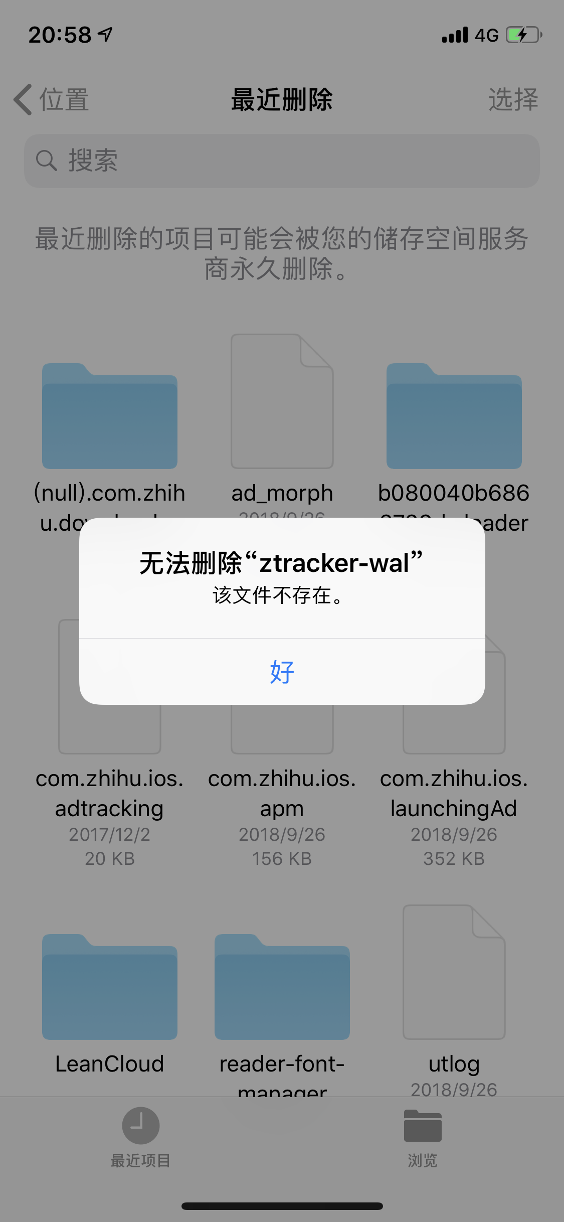 - 如果条件允许的话,建议您在登录同一个 iCloud 账户的另外一台 iOS 设备上打开“文件”App,然后从“最近删除”中查找对应的文件或文件夹进行删除。