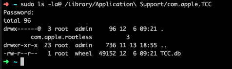 sudo ls -la "/Library/Application Support/com.apple.TCC"