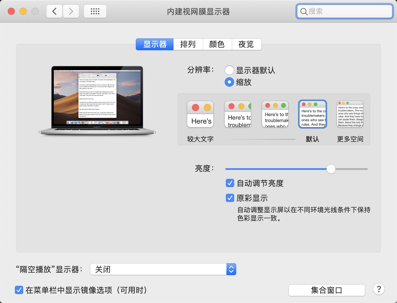 而那里所谓的默认,估计就是普通人感觉不是特别小或大的匹配该显示器尺寸的令一般人比较舒服的一个分辨率而已。而与屏幕的原始分辨率无关。