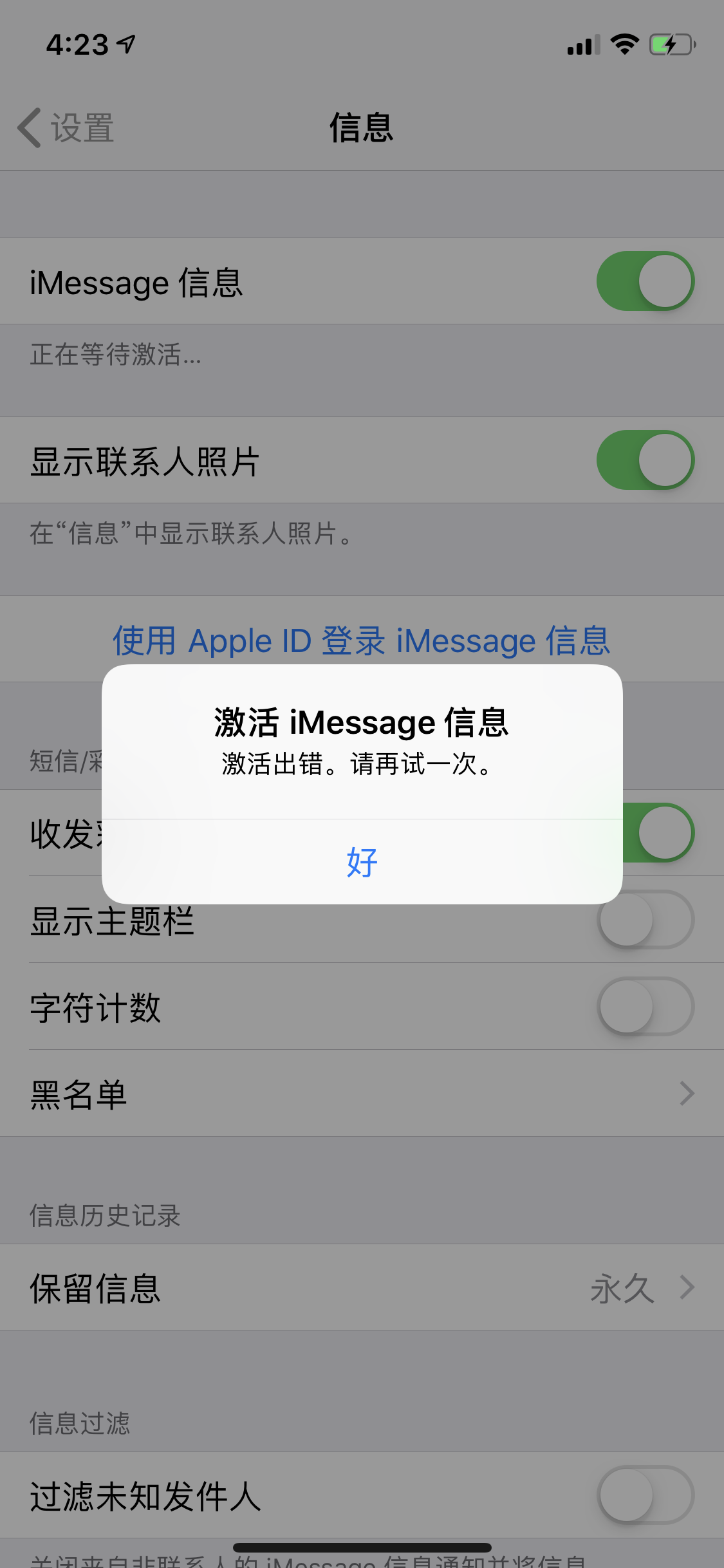 激活 iMessage 信息和 FaceTime 通话最多可能需要 24 小时。如果 24 小时后问题仍然存在,请按照以下步骤操作: