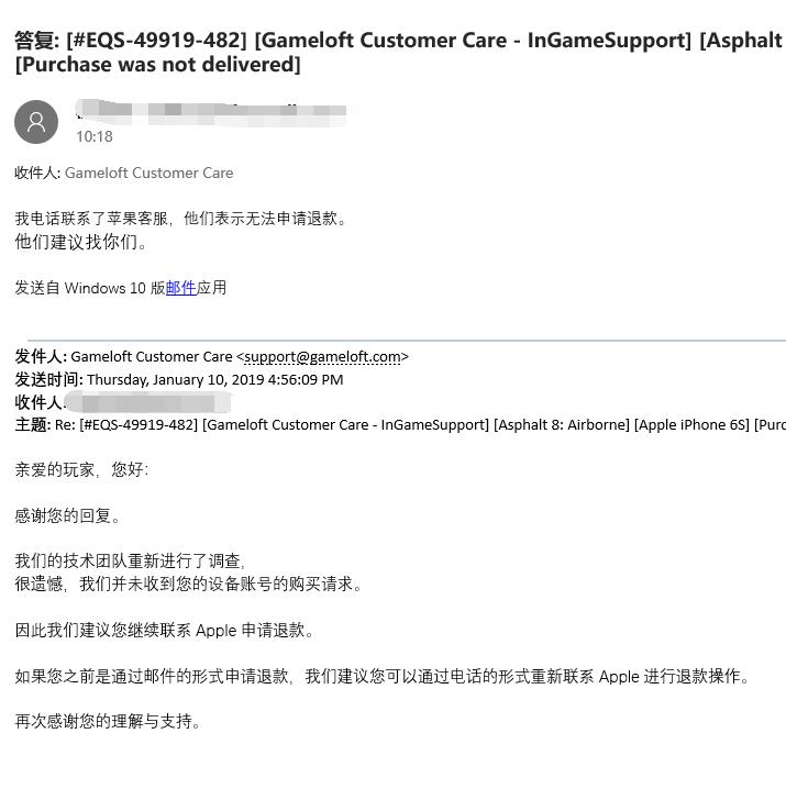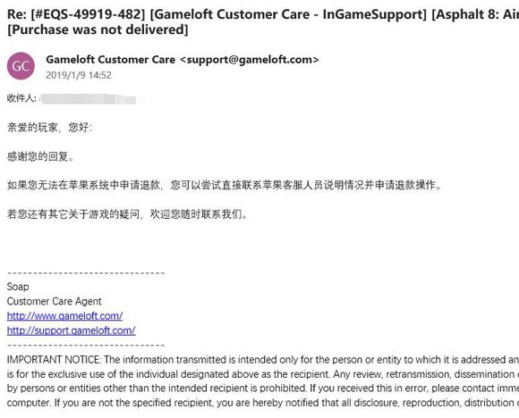 打电话给苹果客服:他们说不关他们的事,这个该找游戏官方。