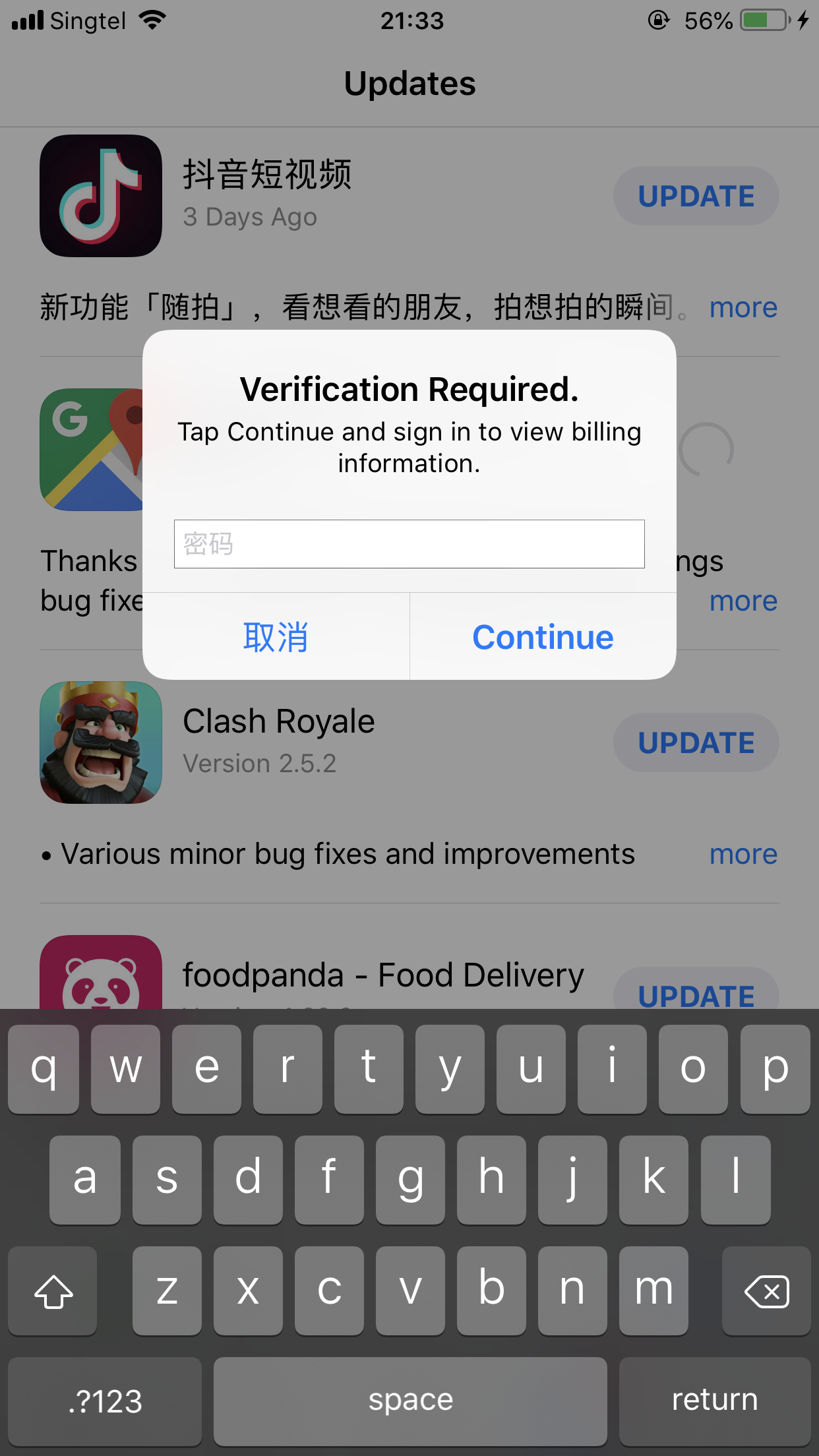 。 - 轻点“设置”>“帐户设置”>“付款信息”。系统可能会要求您使用 Apple ID 登录。