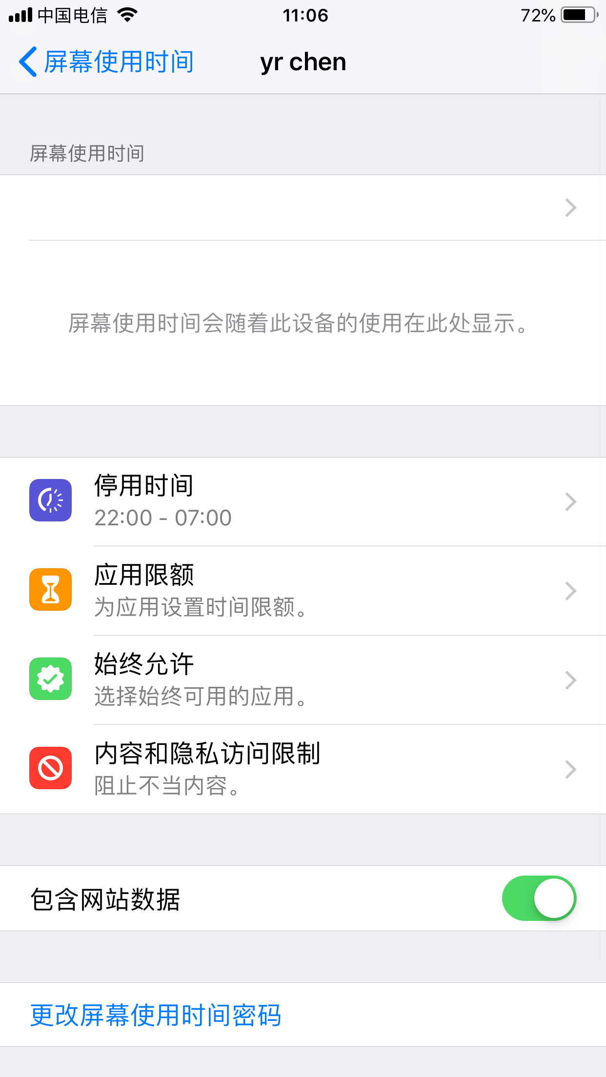 监护人设备是iPhone6sp和iPhoneX,小孩的设备是iPhone6,有加入家庭共享,且为儿童账户!但监护人的手机无法显示小孩的屏幕使用时间,显示界面见照片