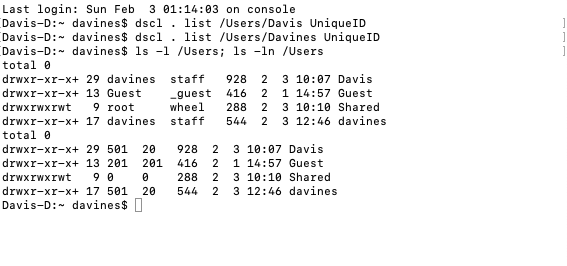 ls -l /Users; ls -ln /Users