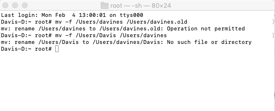mv -f /Users/davines /Users/davines.old