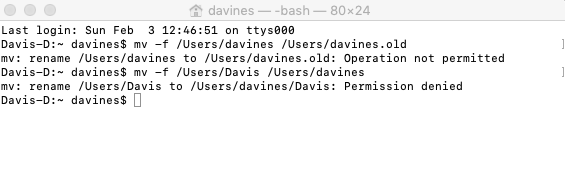 mv -f /Users/Davis /Users/davines