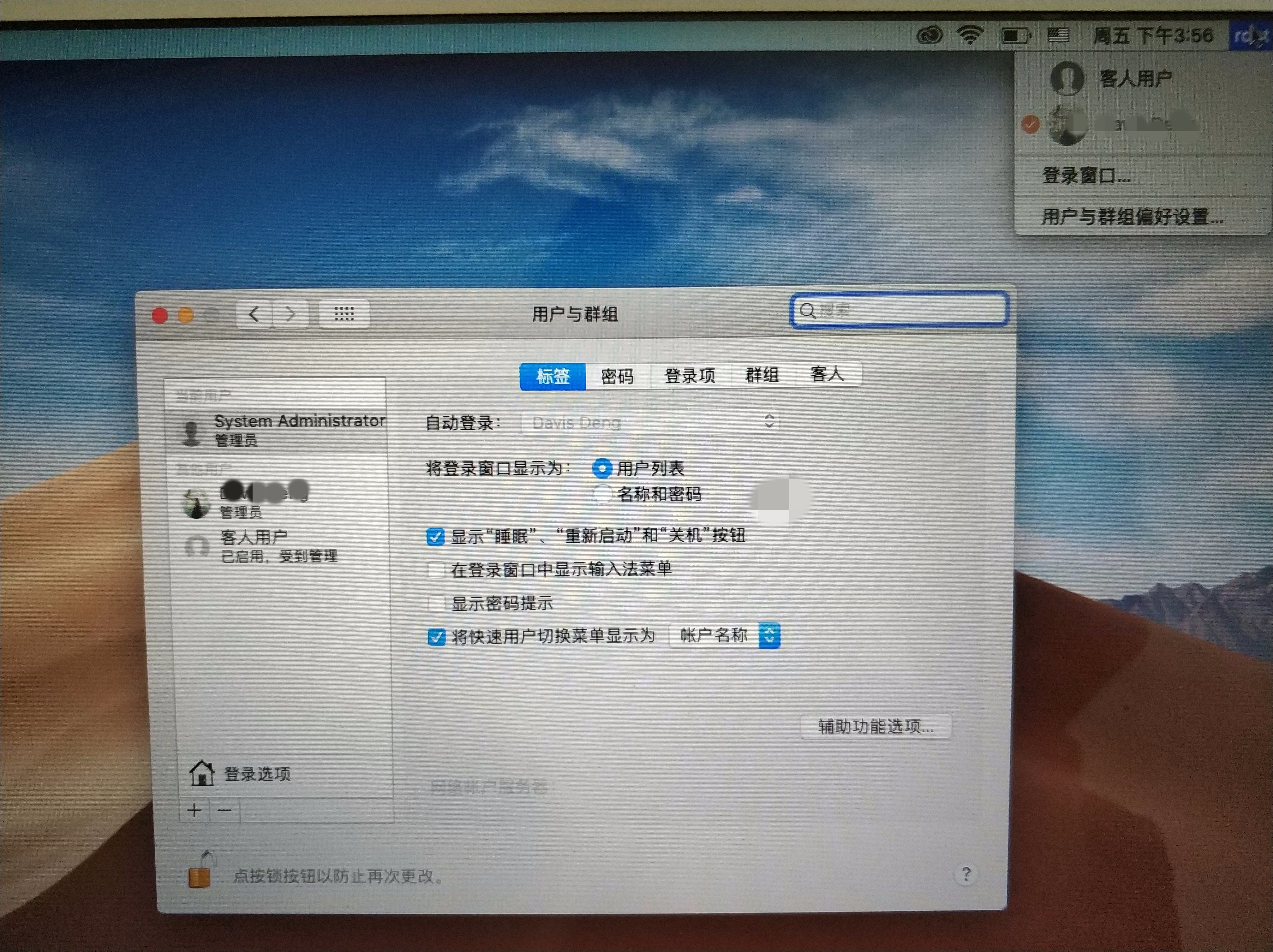 之前不小心改了用户。ID和用户名,重启之后用户就变成了system administrator,系统偏好设置的锁也一直开着,无论怎么按登录界面都切换不回去。