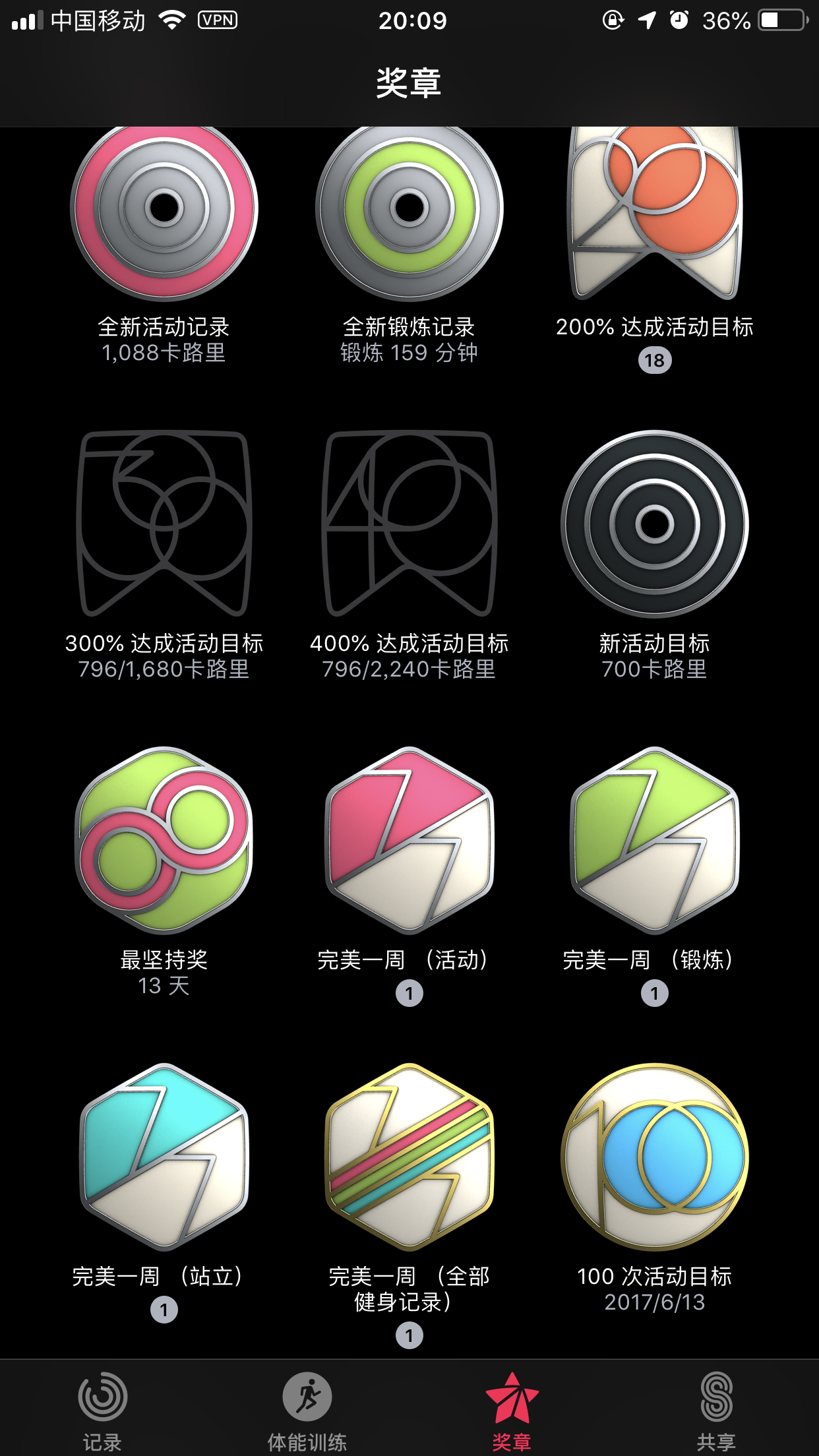 我了解到您对 iPhone 上的“健身记录”App 中未出现每月挑战奖章有疑惑。目前,如果您已经完成过某项“健身记录”挑战,它就不会出现在“奖章”标签页上。 建议您尝试以下步骤,每完成一步后都请查看挑战是不是显示: