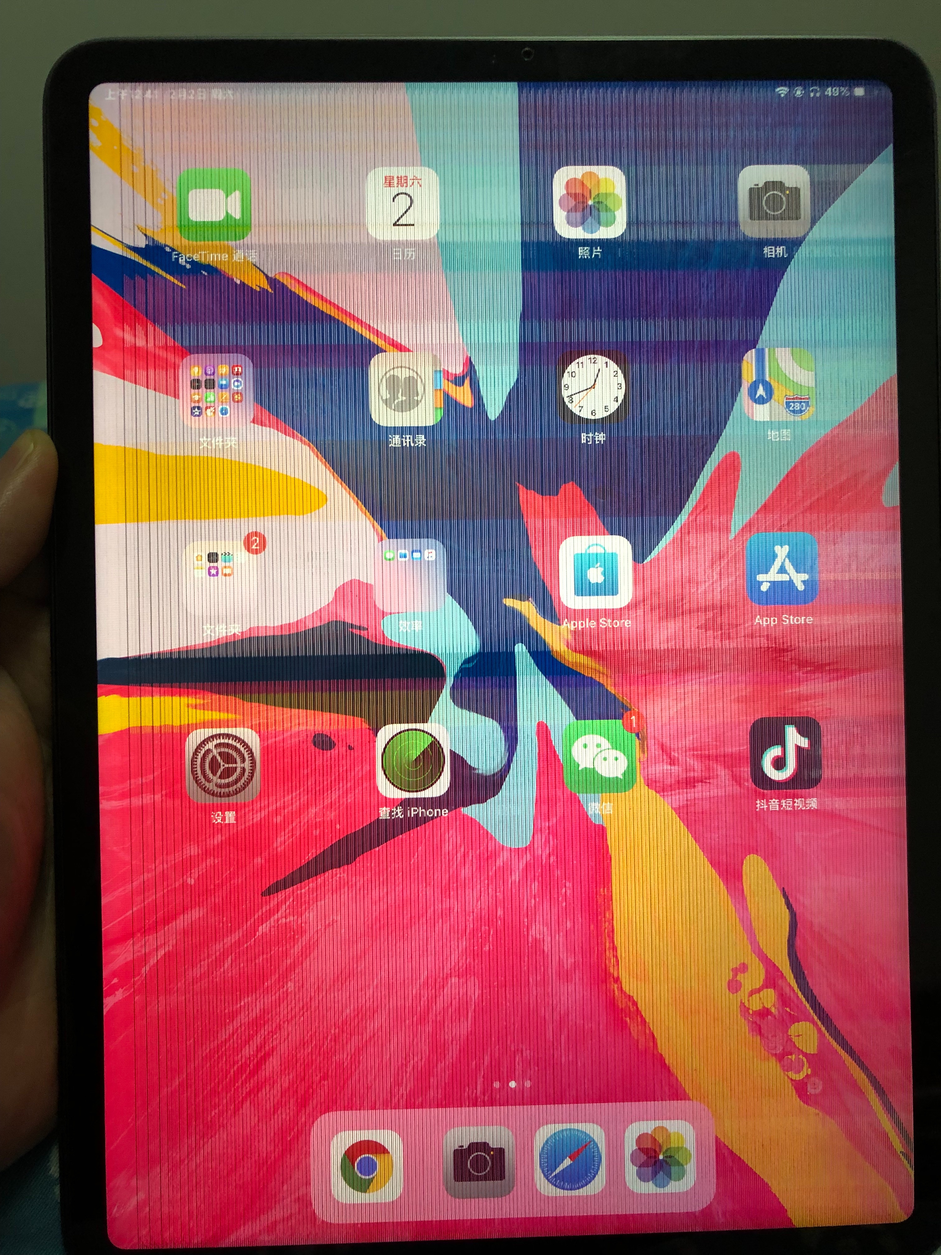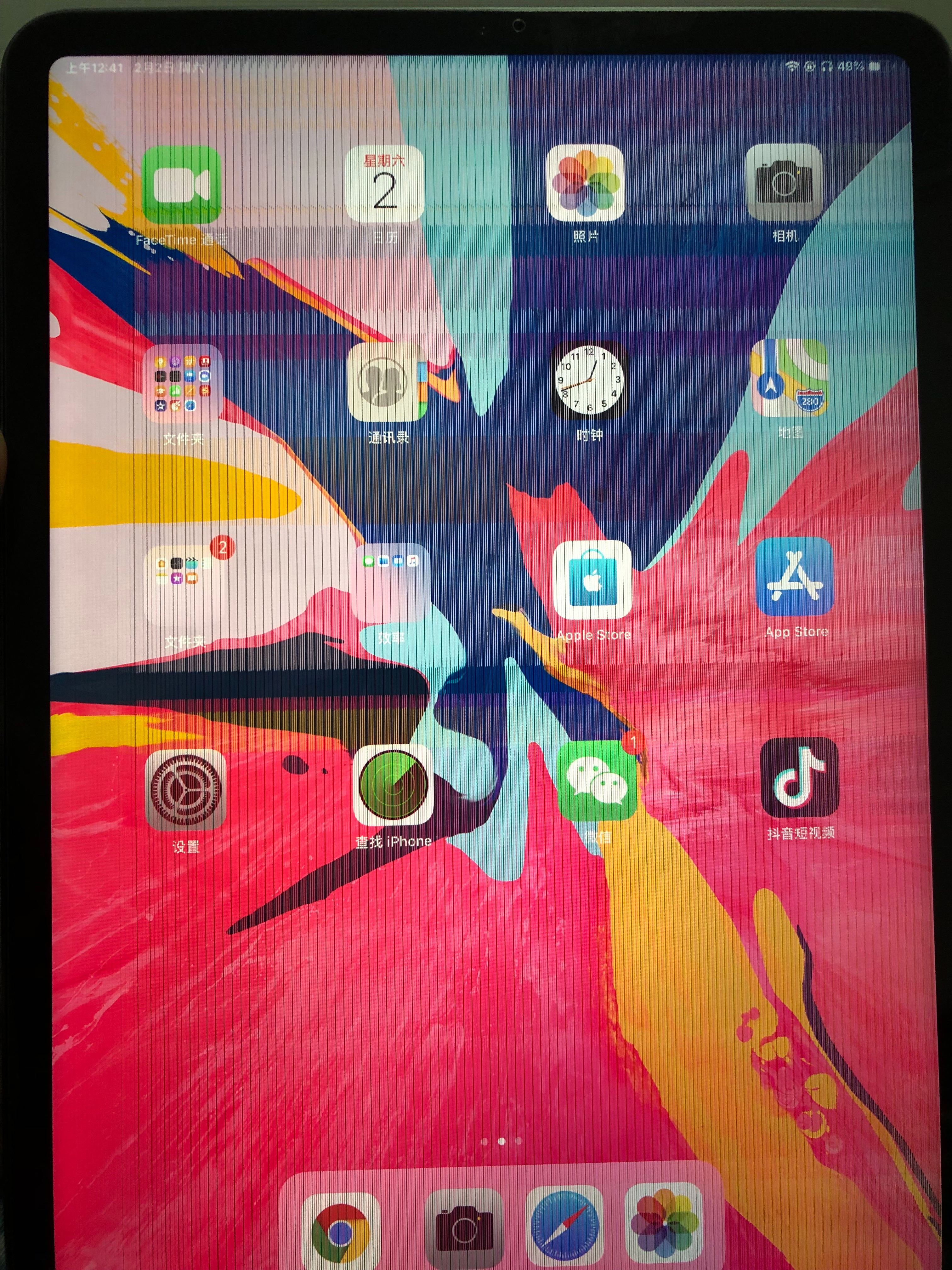 ipad 在使用过程中,突然出现条纹花屏,在正常情况下,也能看到很细小的竖条纹。