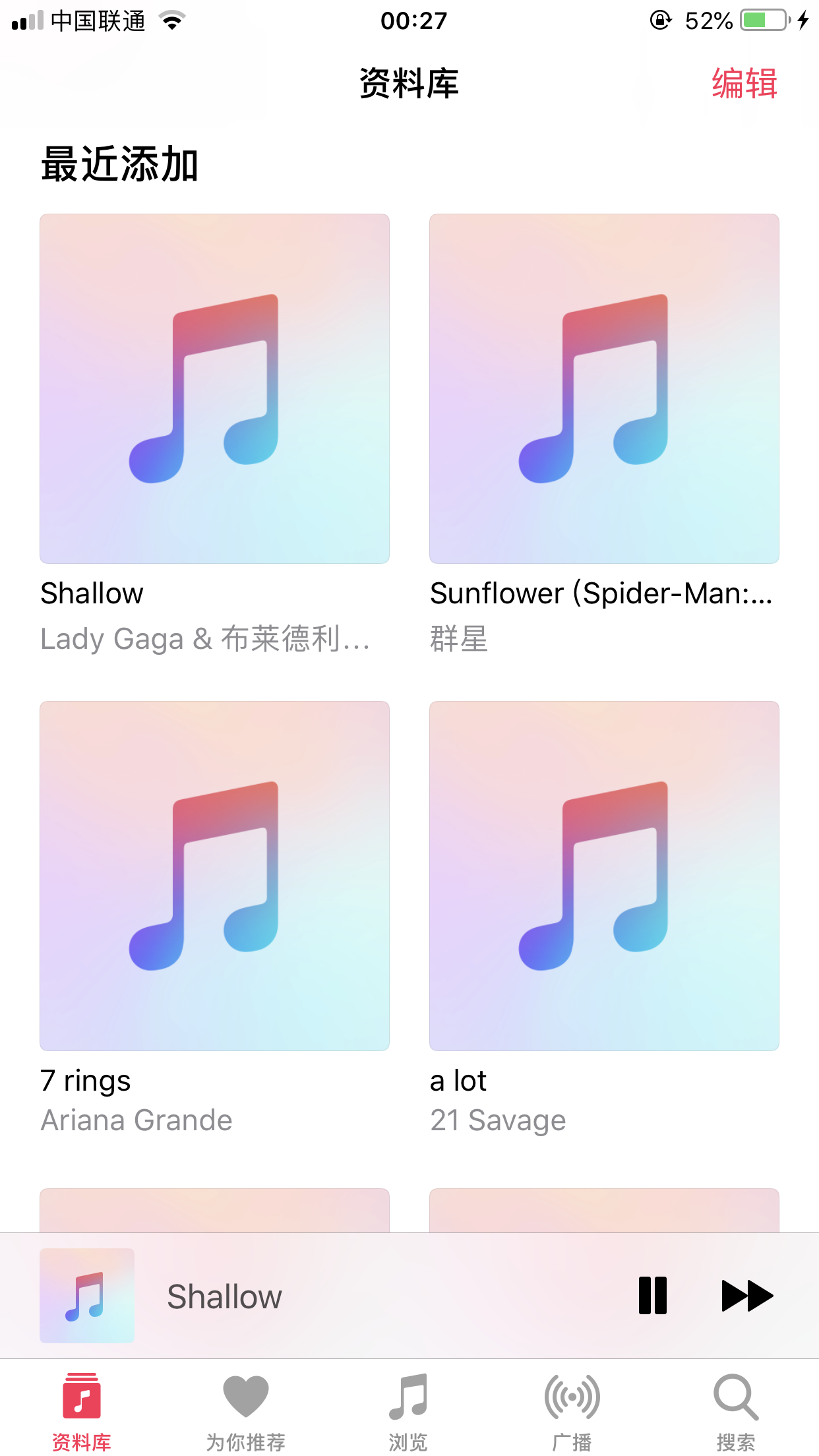 无法加载新添加进资料库的歌曲,也无法加载专辑封面,其他联网功能倒是正常。持续小半年了,我觉得是手机空间不够的问题,我手机常年剩余空间1gb,经常说的解决办法就是 开关iCloud 资料库,确实有用,但是不能每次让我开关吧?