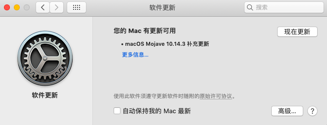 macOS Mojave 10.14.3 补充更新时出错,显示“安装失败 安装所选更新时发生错误。”