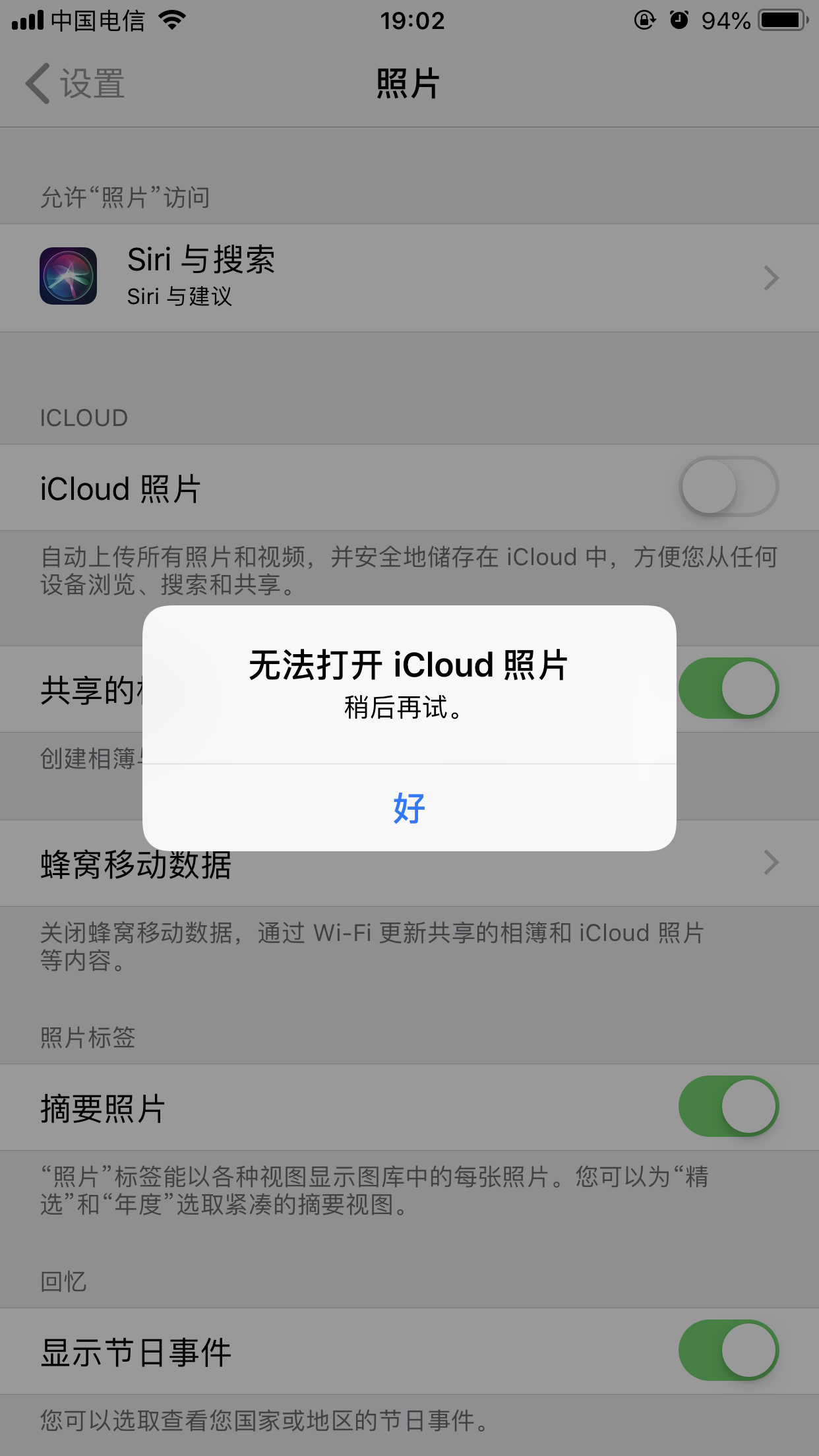我了解您的 iPhone 遇到了无法打开 iCloud 照片的问题。建议您尝试以下步骤: