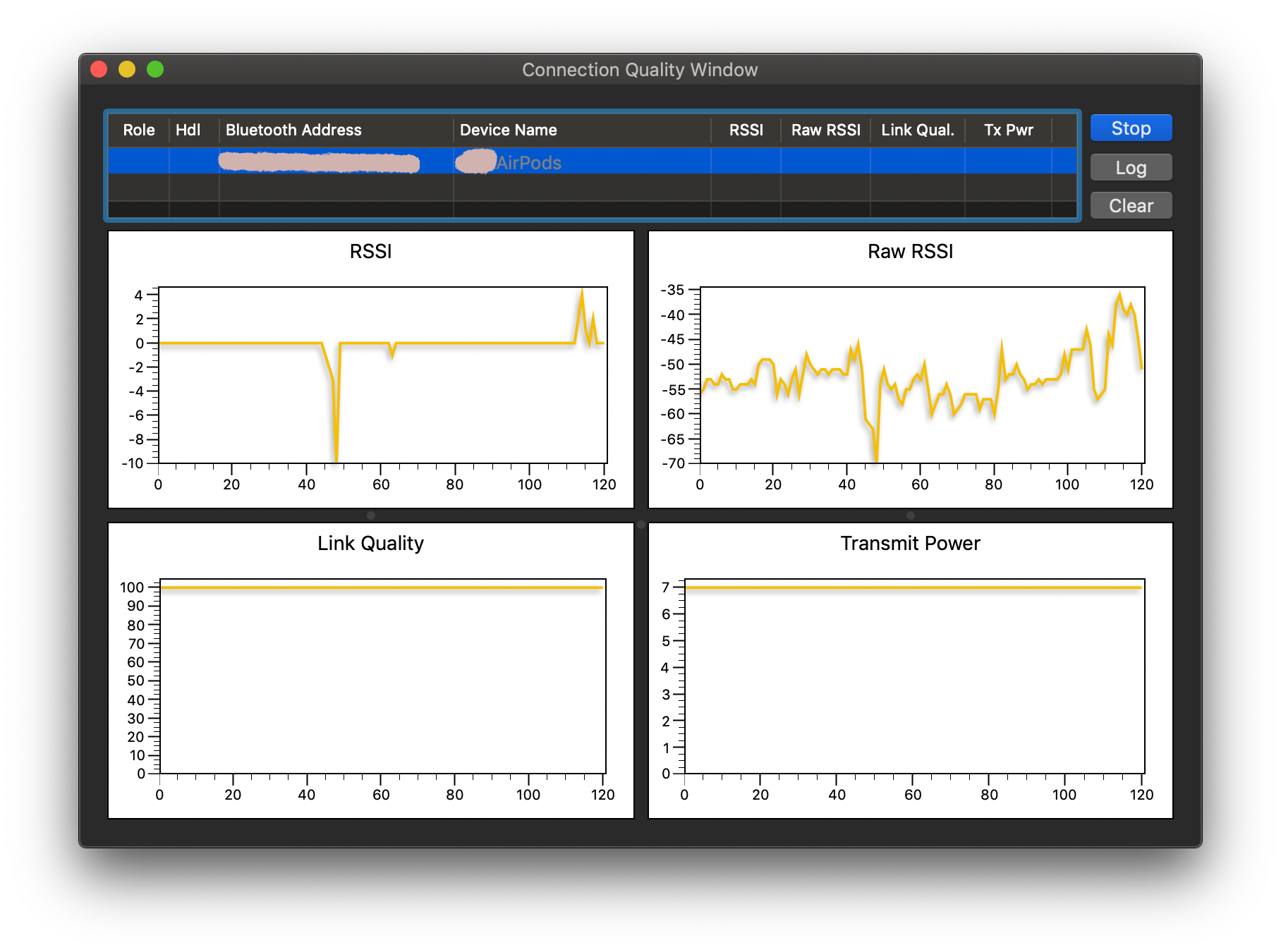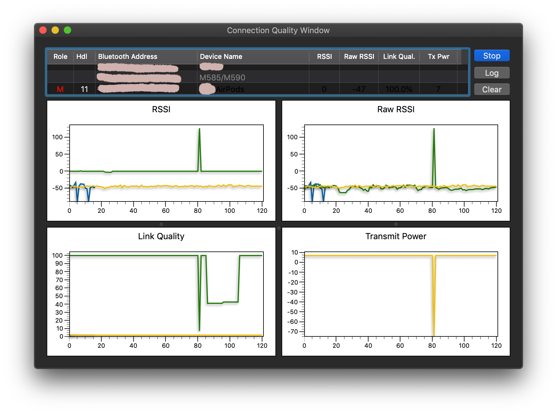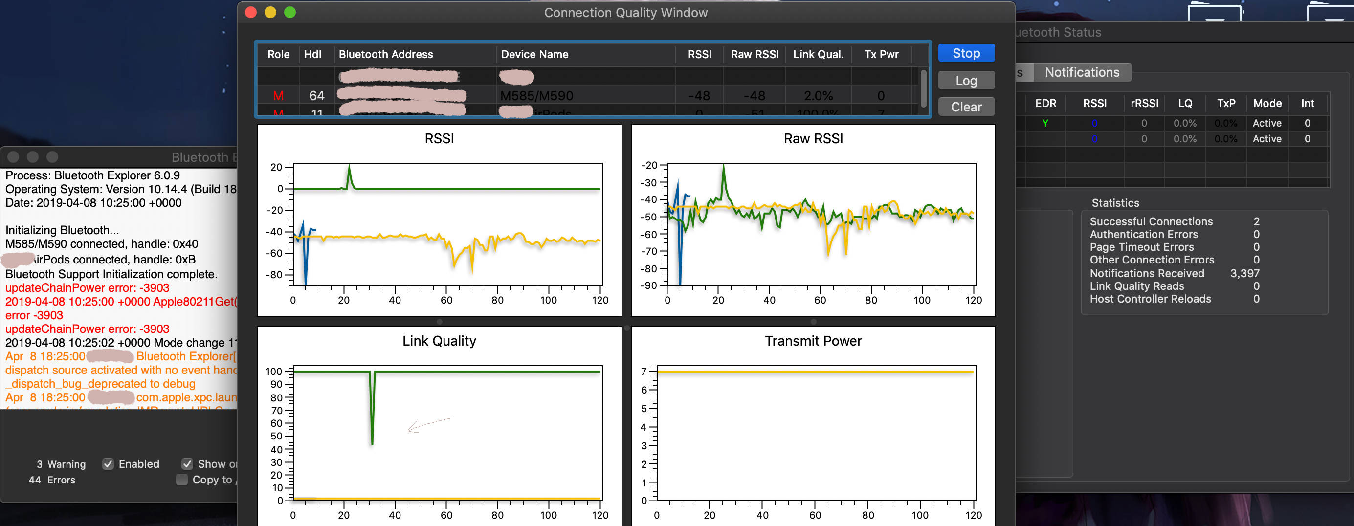 link quality为100的就是AirPods,说实话,找不出任何原因为什么会忽然断连,诡异非常,心累十分