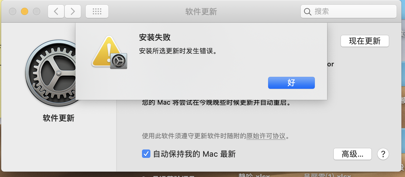 macbook pro 更新系统失败,提示“安装所选更新时发生错误”问题
