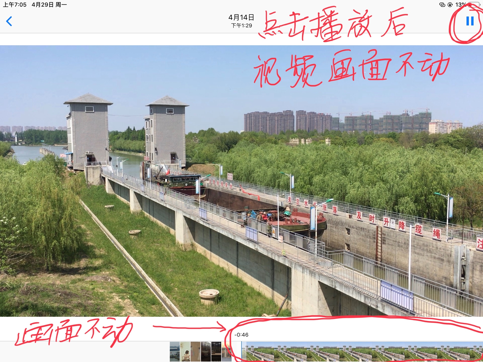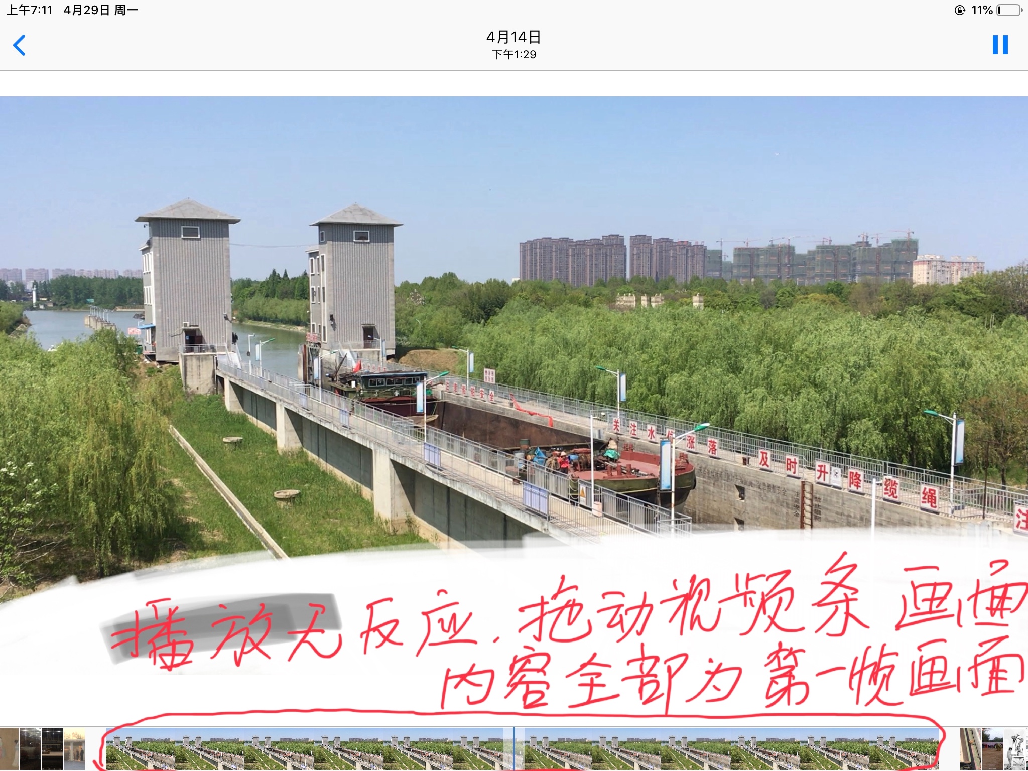 在照片点击播放视频无反应,视频画面不动,并且拖动视频条时,视频内容全部是第一张视频画面。重启正常播放,然后过会后则无法播放视频出现问题。