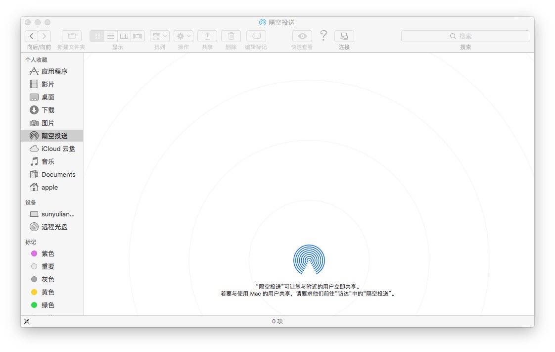 我2011年的mac,打开隔空投送看不到选项,不能和我的iPhone x互传