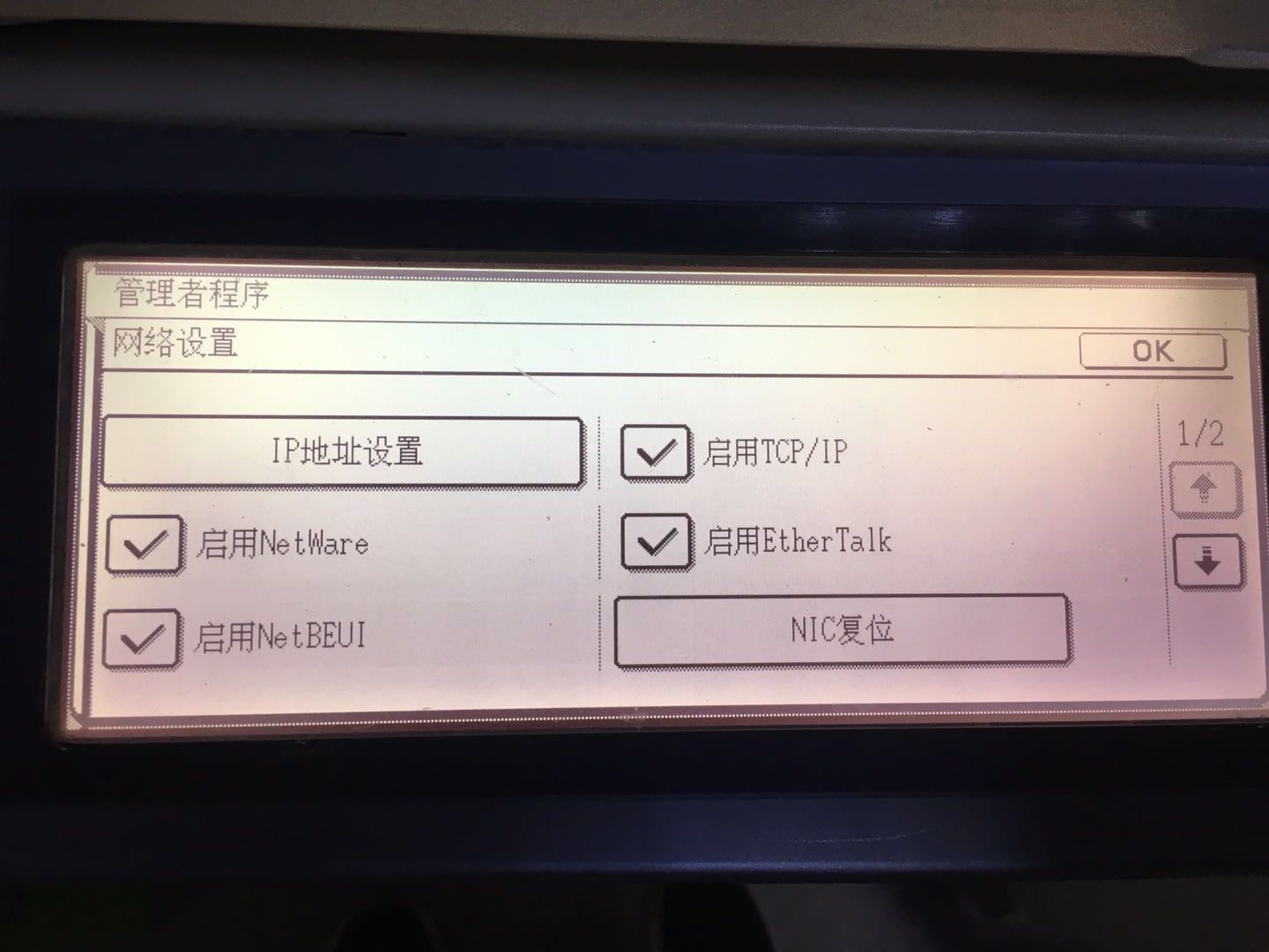 打开打印机的控制面板,没看到打印协议,但是能看到如下的信息: