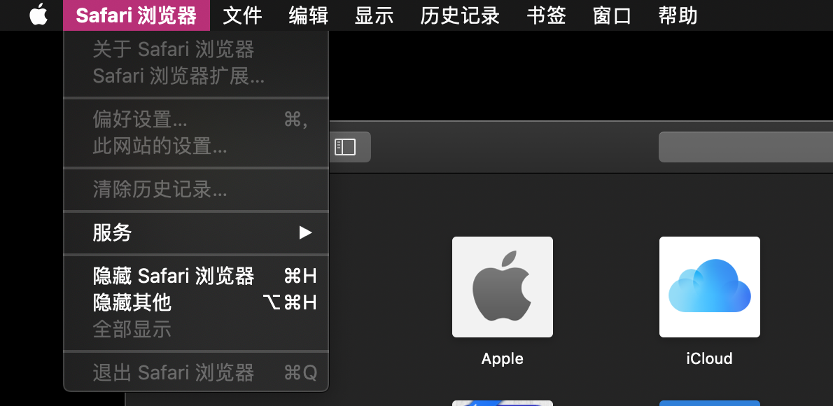 今天打开Safari发现无法操作,点击任何地方都是错误提示音,偏好设置、清除记录、退出等等选项都变灰了,请问该如何解决