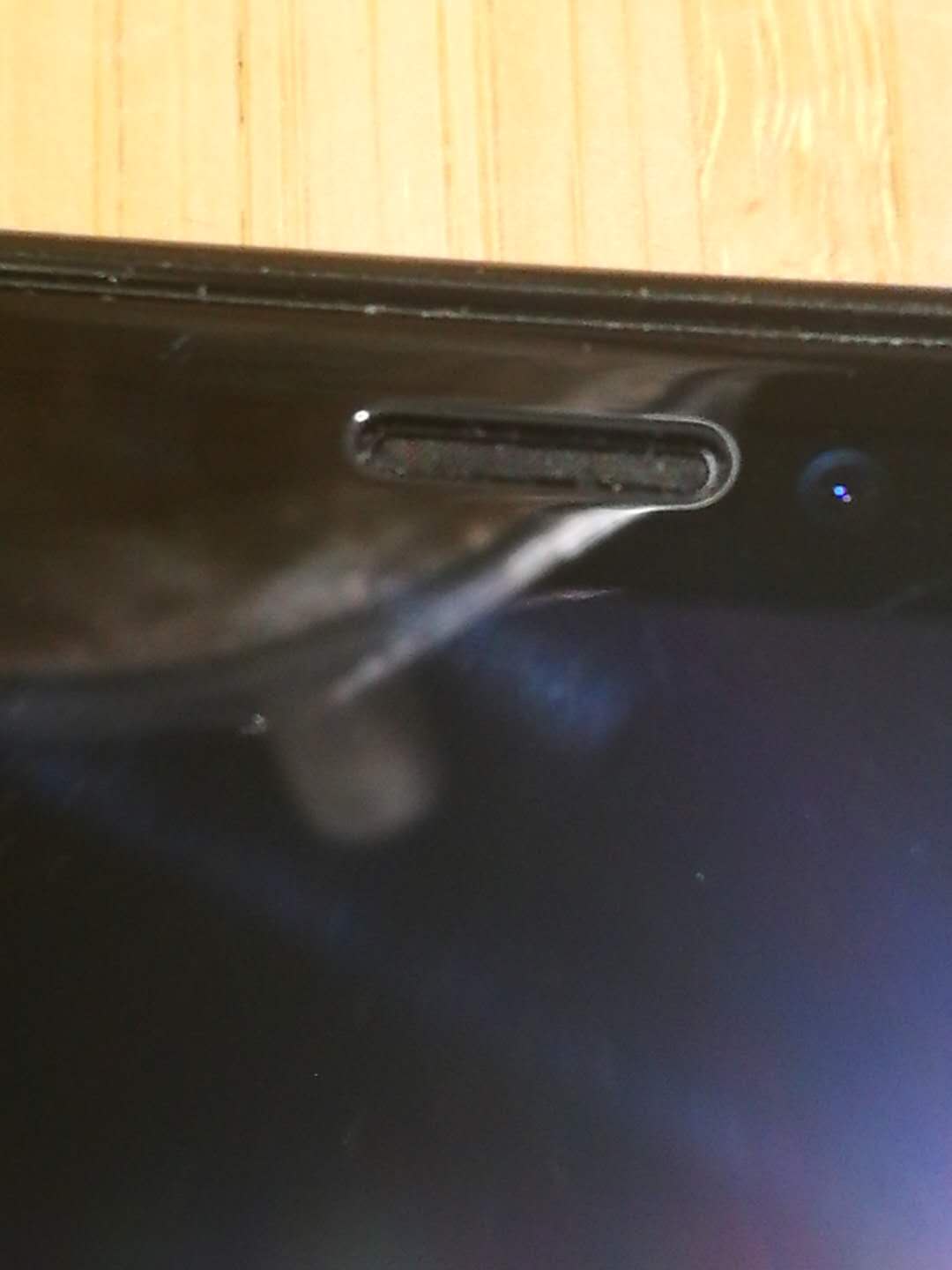 你可以从水平方向看是否正常,不用纠结,听筒网罩有胶固定在屏幕上,还有螺丝将听筒固定在网罩下部。