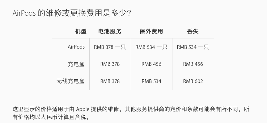 售后的话需要通过你的序列号来创建维修,AirPods来用于创建维修的序列号在充电盒盖的内侧,这个维修事需要提供购买凭证,官网的电子收据也可以,费用是RMB 456,无线是RMB 602