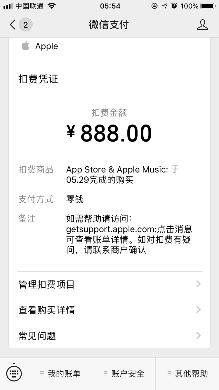 5.如果你的这个的APP没有退款选项,那么后边一定是显示的蓝色框,写着“iTunesstore支持”