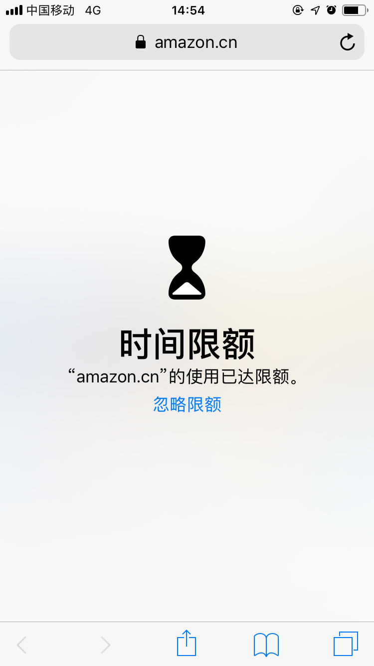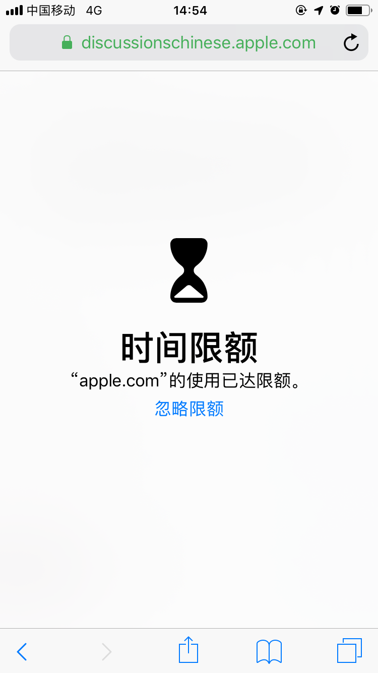 在应用限额的列表中找不到Safari的选项,这样的后果是无法将Safari作为始终可以使用的应用。而当上述情况存在是,每当从一个网页切换到另一个网页时,都会弹出时间限额已到的页面,很不方便。