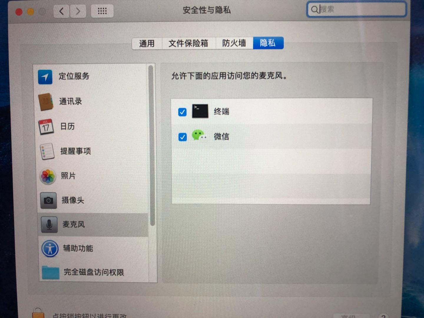 >“系统偏好设置”,点按“安全性与隐私”,然后点按“隐私”。旁边的复选框里面根本没有英雄联盟这个选项,怎么允许麦克风访问权限?