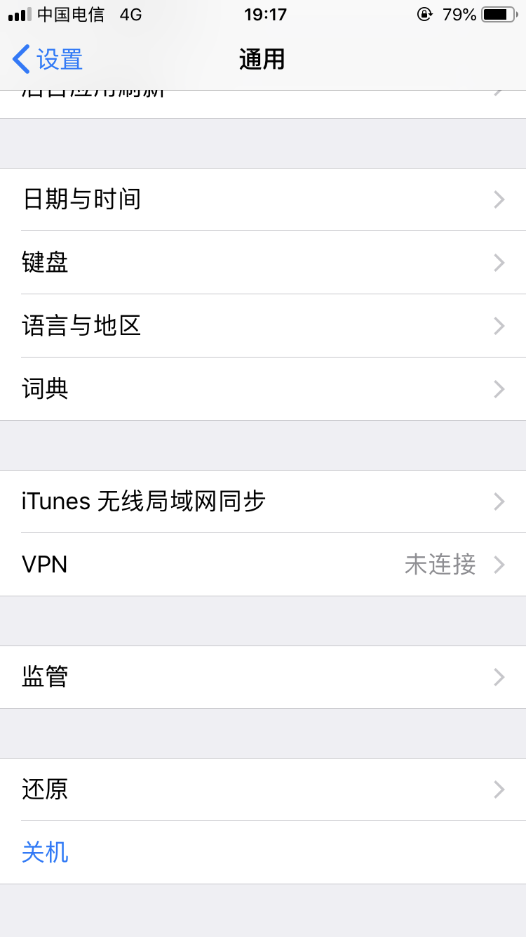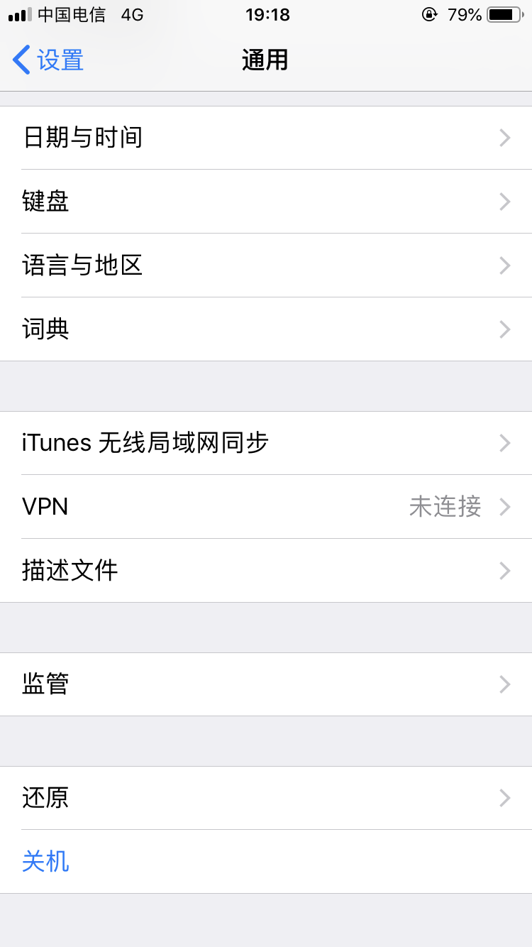 ios12系统的通用-设置选项中一直有一个空白的描述文件选项