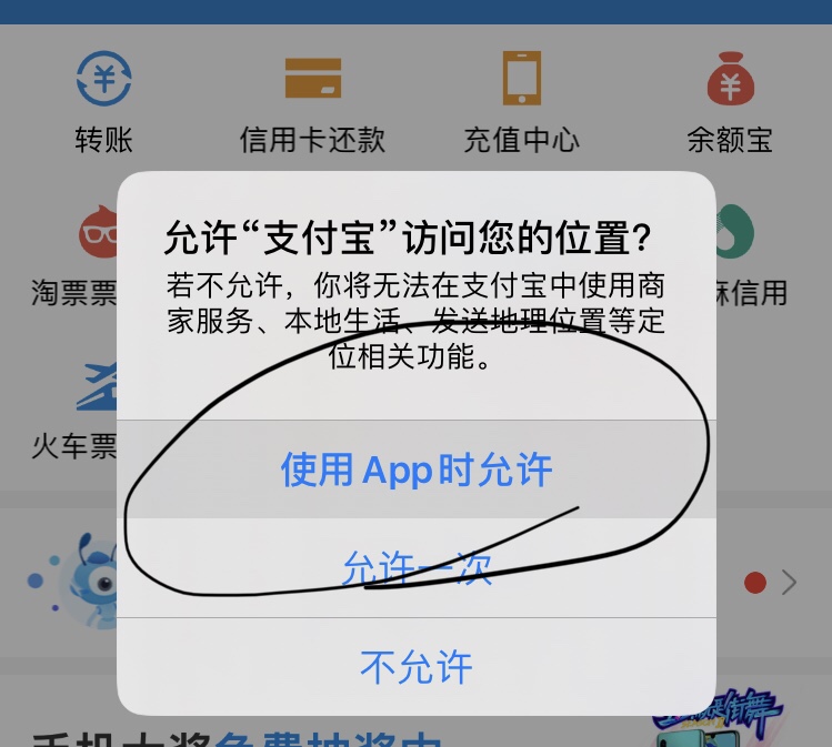 以下用户的用户个人资料: shmily shmily 用户级别: 级别 9 76,469 积分 2019年6月22日 上午3:16 回应 栀193 可以在设置--隐私--定位服务--支付宝理更改使用期间 或者 永不来设置支付保访问位置的情况。 回复 链接